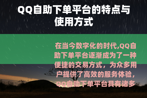 在当今数字化的时代,QQ自助下单平台逐渐成为了一种便捷的交易方式,为众多用户提供了高效的服务体验。