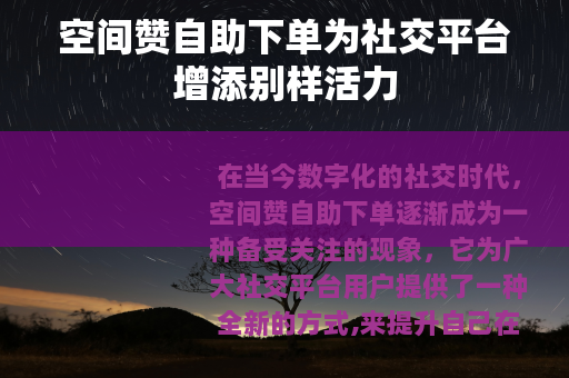 我们可以想象,在未来的社交场景中,用户通过合理利用空间赞自助下单,能够更加轻松地展示自己的才华和个性,吸引到志同道合的朋友和伙伴,无论是个人的成长与发展,还是商业的推广与营销,空间赞自助下单都将成为一种不可或缺的助力工具,它将与其他社交元素相互融合,共同构建一个更加繁荣、多元的社交生态系统,让人们在虚拟的网络世界中感受到更多的温暖、快乐和成就感。