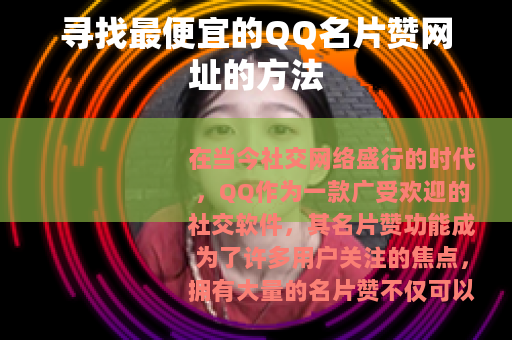 寻找最便宜的QQ名片赞网址需要我们多方面的考虑和努力,通过合理的比较、选择以及关注优惠活动等方式,我们可以在保证服务质量的前提下,以较低的价格获得足够的QQ名片赞,从而让自己的QQ名片更加出彩,在社交网络中展现出更高的人气。