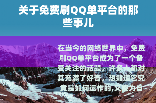 在当今的网络世界中,免费刷QQ单平台成为了一个备受关注的话题,许多人都对其充满了好奇,想知道它究竟是如何运作的,又能为自己带来哪些好处。
