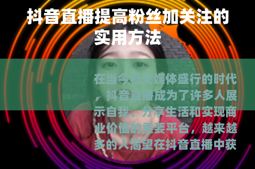 在当今社交媒体盛行的时代,抖音直播成为了许多人展示自我、分享生活和实现商业价值的重要平台,越来越多的人渴望在抖音直播中获得更多的粉丝和关注,从而扩大自己的影响力,抖音直播怎么提高粉丝加关注呢?以下是一些实用的方法。