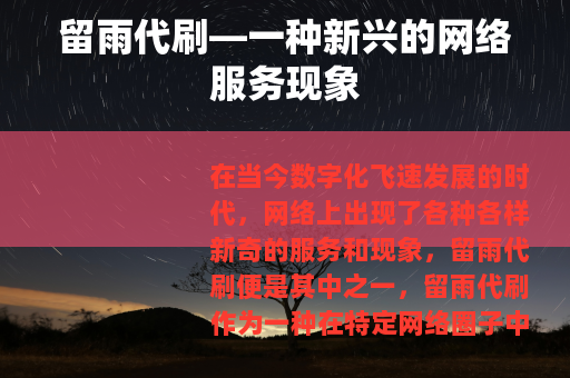 在当今数字化飞速发展的时代,网络上出现了各种各样新奇的服务和现象,留雨代刷便是其中之一,留雨代刷作为一种在特定网络圈子中逐渐兴起的服务,吸引了不少人的关注。