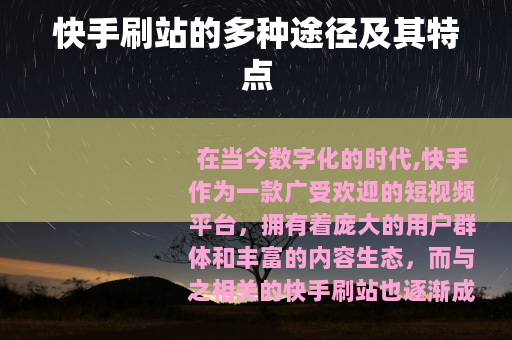 在当今数字化的时代,快手作为一款广受欢迎的短视频平台,拥有着庞大的用户群体和丰富的内容生态,而与之相关的快手刷站也逐渐成为一些人关注的话题。