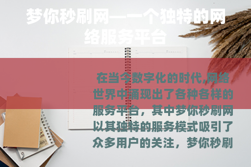 在当今数字化的时代,网络世界中涌现出了各种各样的服务平台,其中梦你秒刷网以其独特的服务模式吸引了众多用户的关注。