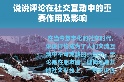在当今数字化的社交时代,说说评论成为了人们交流互动中不可或缺的一部分,无论是在朋友圈、微博还是其他社交平台上,一条说说往往会引发众多的评论,这些评论就像一场热闹的思想盛宴,丰富着我们的社交体验。