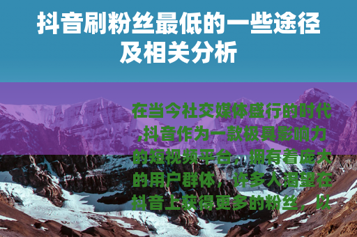 抖音刷粉丝最低的一些途径及相关分析