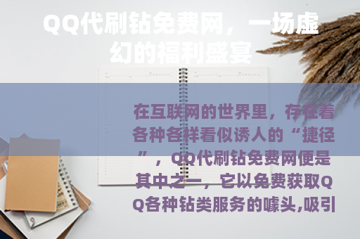 在互联网的世界里,存在着各种各样看似诱人的“捷径”,QQ代刷钻免费网便是其中之一,它以免费获取QQ各种钻类服务的噱头,吸引了众多QQ用户的目光。