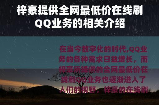 在当今数字化的时代,QQ业务的各种需求日益增长,而梓豪所提供的全网最低价在线刷QQ业务也逐渐进入了人们的视野。