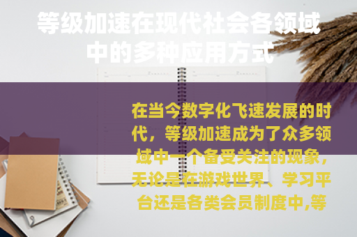 在当今数字化飞速发展的时代,等级加速成为了众多领域中一个备受关注的现象,无论是在游戏世界、学习平台还是各类会员制度中,等级加速都有着重要的意义和广泛的应用。