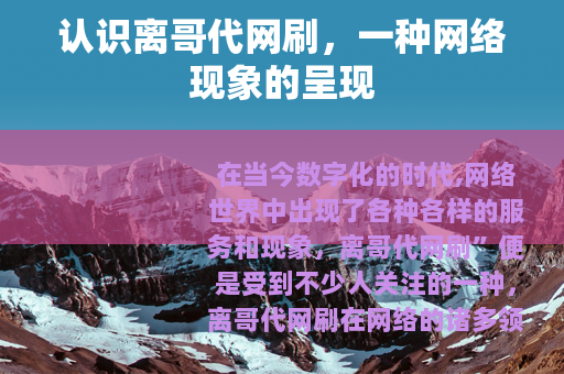 在当今数字化的时代,网络世界中出现了各种各样的服务和现象,离哥代网刷”便是受到不少人关注的一种。