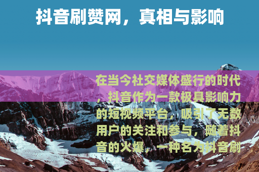 在当今社交媒体盛行的时代,抖音作为一款极具影响力的短视频平台,吸引了无数用户的关注和参与,随着抖音的火爆,一种名为抖音刷赞网的现象也悄然兴起,引发了众多用户的好奇与讨论。