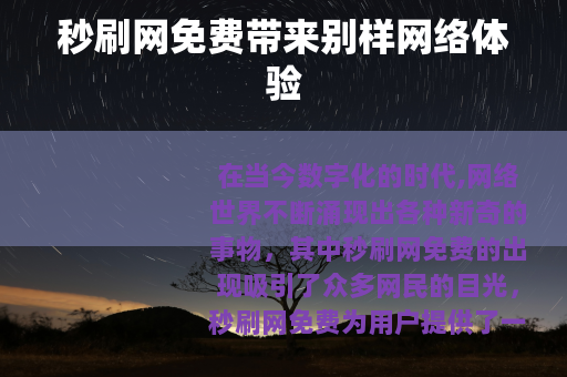在当今数字化的时代,网络世界不断涌现出各种新奇的事物,其中秒刷网免费的出现吸引了众多网民的目光,秒刷网免费为用户提供了一种快速获取信息和资源的途径,让人们能够在短时间内满足自己的各种需求。