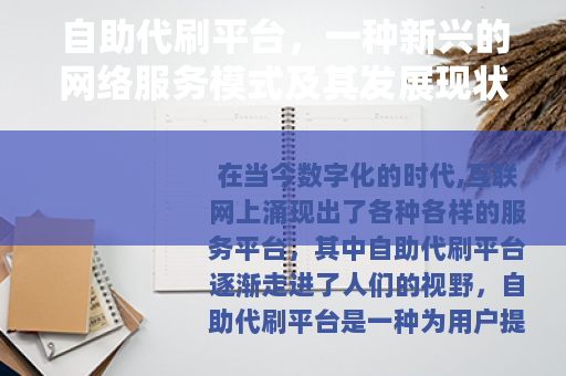 在当今数字化的时代,互联网上涌现出了各种各样的服务平台,其中自助代刷平台逐渐走进了人们的视野,自助代刷平台是一种为用户提供特定数据或操作代刷服务的在线平台,它在一定程度上满足了部分用户在网络世界中的特定需求。