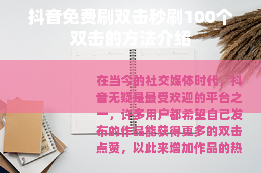 在当今的社交媒体时代,抖音无疑是最受欢迎的平台之一,许多用户都希望自己发布的作品能获得更多的双击点赞,以此来增加作品的热度和曝光度,而有一种说法是可以免费刷双击并且能秒刷100个双击,这引起了不少人的关注。