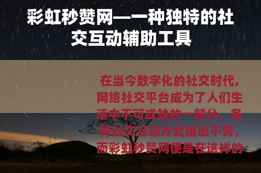 在当今数字化的社交时代,网络社交平台成为了人们生活中不可或缺的一部分,各种社交互动方式层出不穷,而彩虹秒赞网便是在这样的背景下应运而生的一种工具。