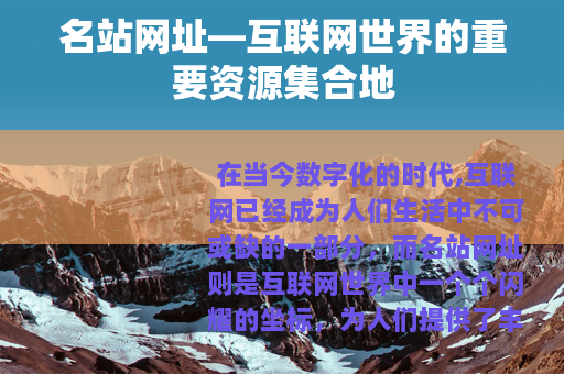 在当今数字化的时代,互联网已经成为人们生活中不可或缺的一部分,而名站网址则是互联网世界中一个个闪耀的坐标,为人们提供了丰富多样的信息和服务。