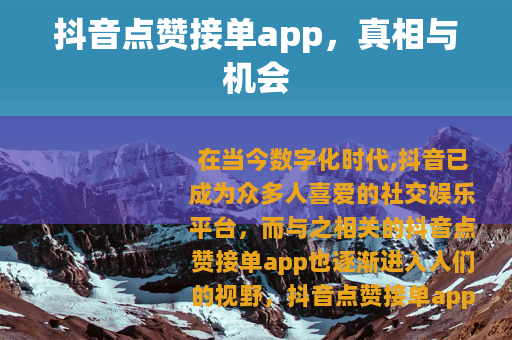 在当今数字化时代,抖音已成为众多人喜爱的社交娱乐平台,而与之相关的抖音点赞接单app也逐渐进入人们的视野。