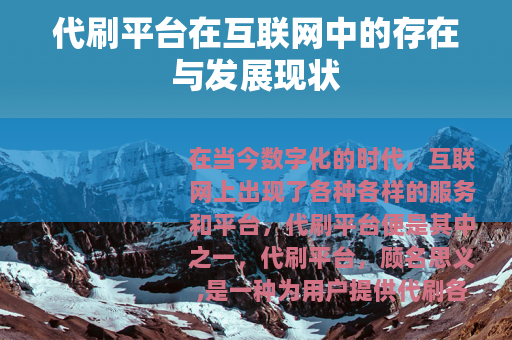 在当今数字化的时代,互联网上出现了各种各样的服务和平台,代刷平台便是其中之一,代刷平台,顾名思义,是一种为用户提供代刷各类数据服务的网络平台。