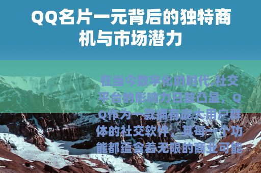在当今数字化的时代,社交平台的影响力日益凸显,QQ作为一款拥有庞大用户群体的社交软件,其每一个功能都蕴含着无限的商业可能,QQ名片以一元的价格,正悄然开启了一个独特的市场领域,吸引着众多目光,展现出别样的魅力与价值。