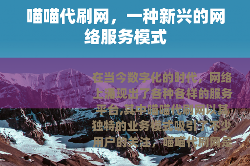在当今数字化的时代,网络上涌现出了各种各样的服务平台,其中喵喵代刷网以其独特的业务模式吸引了不少用户的关注。