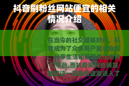 在当今的社交媒体时代,抖音成为了众多用户展示自我、分享生活和获取关注的热门平台,而抖音刷粉丝网站便宜这一现象也逐渐进入了人们的视野。