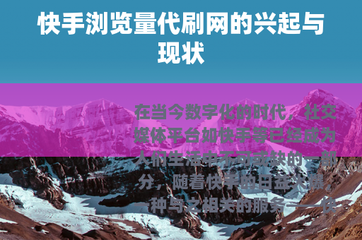 在当今数字化的时代,社交媒体平台如快手等已经成为人们生活中不可或缺的一部分,随着快手的日益火爆,一种与之相关的服务——快手浏览量代刷网也悄然兴起。