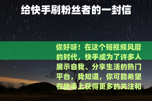 需注意的是,刷粉丝等行为违反了平台规定和商业道德,不建议任何人进行此类操作,本文旨在通过书信形式对可能有此想法的人进行善意提醒和引导。