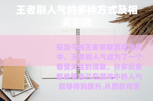在当今的王者荣耀游戏世界中,王者刷人气成为了一个备受关注的现象,许多玩家都希望自己在游戏中的人气能够得到提升,从而获得更多的关注和认可。