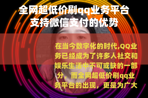 在当今数字化的时代,QQ业务已经成为了许多人社交和娱乐生活中不可或缺的一部分,而全网超低价刷qq业务平台的出现,更是为广大QQ用户带来了全新的便利和选择,尤其是那些支持微信支付的平台,更是受到了众多用户的青睐。
