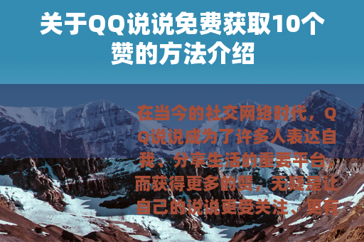在当今的社交网络时代,QQ说说成为了许多人表达自我、分享生活的重要平台,而获得更多的赞,无疑是让自己的说说更受关注、更有成就感的一件事,就来给大家介绍一些可以免费获得QQ说说10个赞的方法。