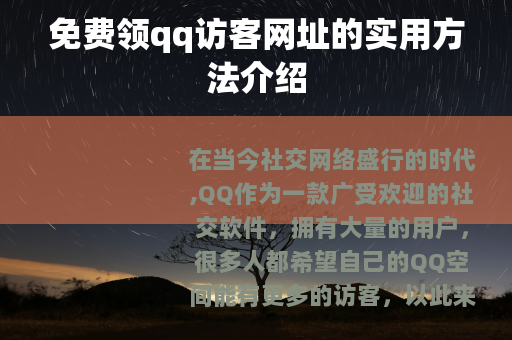 在当今社交网络盛行的时代,QQ作为一款广受欢迎的社交软件,拥有大量的用户,很多人都希望自己的QQ空间能有更多的访客,以此来增加自己的人气和社交活跃度,而免费领qq访客网址就成为了不少人关注的焦点。