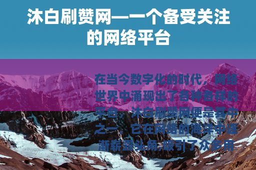 在当今数字化的时代,网络世界中涌现出了各种各样的平台,沐白刷赞网便是其中之一,它在网络的海洋中逐渐崭露头角,吸引了众多用户的目光。