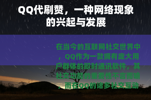 QQ代刷赞作为一种网络现象,在互联网社交和商业领域都有着一定的影响力,它既满足了部分用户的需求,也带来了一些问题和挑战,在未来,如何在满足用户需求的同时,维护平台的公平性和安全性,将是QQ代刷赞服务以及整个互联网社交行业需要共同思考和解决的问题。