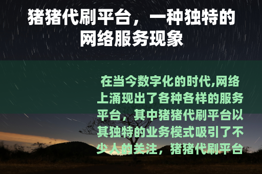 在当今数字化的时代,网络上涌现出了各种各样的服务平台,其中猪猪代刷平台以其独特的业务模式吸引了不少人的关注。