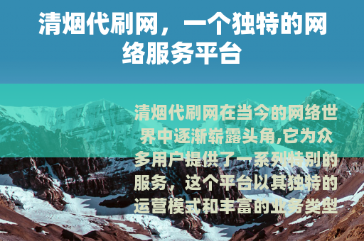 清烟代刷网在当今的网络世界中逐渐崭露头角,它为众多用户提供了一系列特别的服务,这个平台以其独特的运营模式和丰富的业务类型,吸引了不少人的关注。