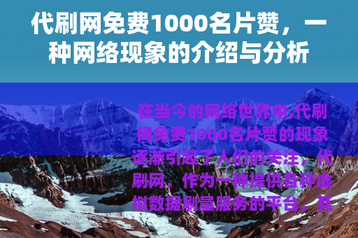 在当今的网络世界中,代刷网免费1000名片赞的现象逐渐引起了人们的关注,代刷网,作为一种提供各种虚拟数据刷量服务的平台,其中免费1000名片赞的活动更是吸引了众多用户的目光。