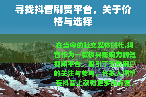 在当今的社交媒体时代,抖音作为一款极具影响力的短视频平台,吸引了无数用户的关注与参与,许多人渴望在抖音上获得更多的点赞,以提升自己作品的热度和影响力,一些人开始寻找最便宜的抖音刷赞平台网站,希望通过这种方式来快速实现自己的目标。