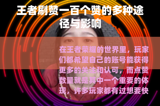 在王者荣耀的世界里,玩家们都希望自己的账号能获得更多的关注和认可,而点赞数量就是其中一个重要的体现,许多玩家都有过想要快速获得一百个赞的想法,今天我们就来聊聊王者刷赞一百个赞的那些事儿。
