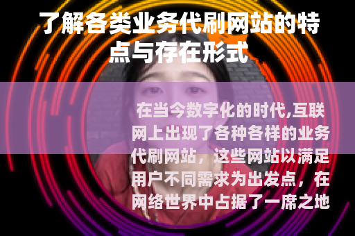 在当今数字化的时代,互联网上出现了各种各样的业务代刷网站,这些网站以满足用户不同需求为出发点,在网络世界中占据了一席之地。