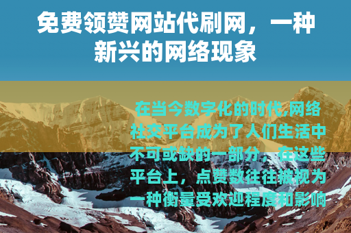 在当今数字化的时代,网络社交平台成为了人们生活中不可或缺的一部分,在这些平台上,点赞数往往被视为一种衡量受欢迎程度和影响力的重要指标,免费领赞网站代刷网应运而生,为许多用户提供了一种快速增加点赞数的途径。