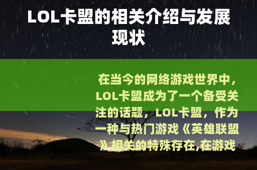 在当今的网络游戏世界中,LOL卡盟成为了一个备受关注的话题,LOL卡盟,作为一种与热门游戏《英雄联盟》相关的特殊存在,在游戏玩家群体中有着一定的影响力。