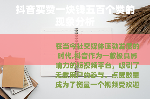 在当今社交媒体蓬勃发展的时代,抖音作为一款极具影响力的短视频平台,吸引了无数用户的参与,点赞数量成为了衡量一个视频受欢迎程度的重要指标之一,而市场上出现了一种现象,即声称抖音买赞一块钱五百个赞,这引起了广泛的关注和讨论。