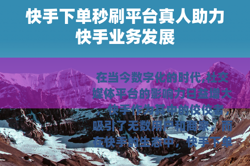 在当今数字化的时代,社交媒体平台的影响力日益增大,快手作为其中的佼佼者,吸引了无数用户和商家,而在快手的生态中,快手下单秒刷平台真人逐渐成为一个备受关注的话题。