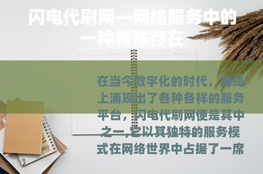 在当今数字化的时代,网络上涌现出了各种各样的服务平台,闪电代刷网便是其中之一,它以其独特的服务模式在网络世界中占据了一席之地。