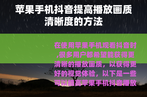 在使用苹果手机观看抖音时,很多用户都希望能获得更清晰的播放画质,以获得更好的视觉体验,以下是一些可以提高苹果手机抖音播放画质清晰度的方法。
