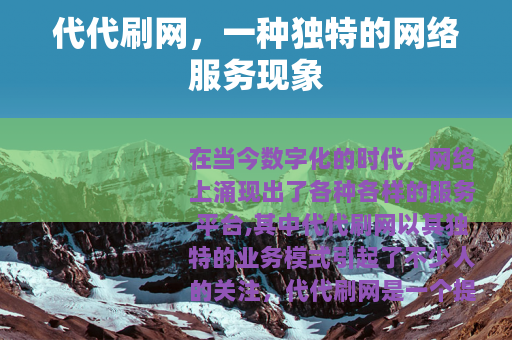 在当今数字化的时代,网络上涌现出了各种各样的服务平台,其中代代刷网以其独特的业务模式引起了不少人的关注。
