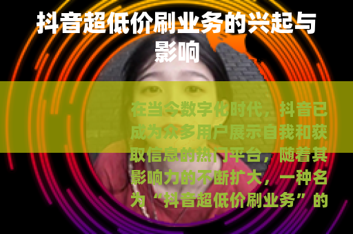在当今数字化时代,抖音已成为众多用户展示自我和获取信息的热门平台,随着其影响力的不断扩大,一种名为“抖音超低价刷业务”的现象也悄然兴起。