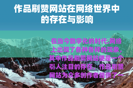 在当今数字化的时代,网络上出现了各种各样的现象,其中作品刷赞网站便是一个引人注目的存在,作品刷赞网站为众多创作者提供了一种看似便捷的途径来提升自己作品的点赞数量。