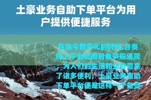 在当今数字化的时代,各类线上平台如雨后春笋般涌现,为人们的生活和业务带来了诸多便利,土豪业务自助下单平台便是这样一个备受瞩目的存在。