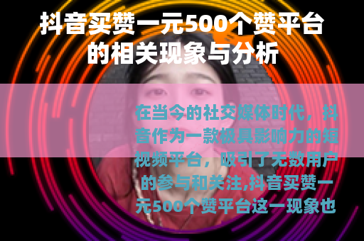 在当今的社交媒体时代,抖音作为一款极具影响力的短视频平台,吸引了无数用户的参与和关注,抖音买赞一元500个赞平台这一现象也逐渐进入了人们的视野。